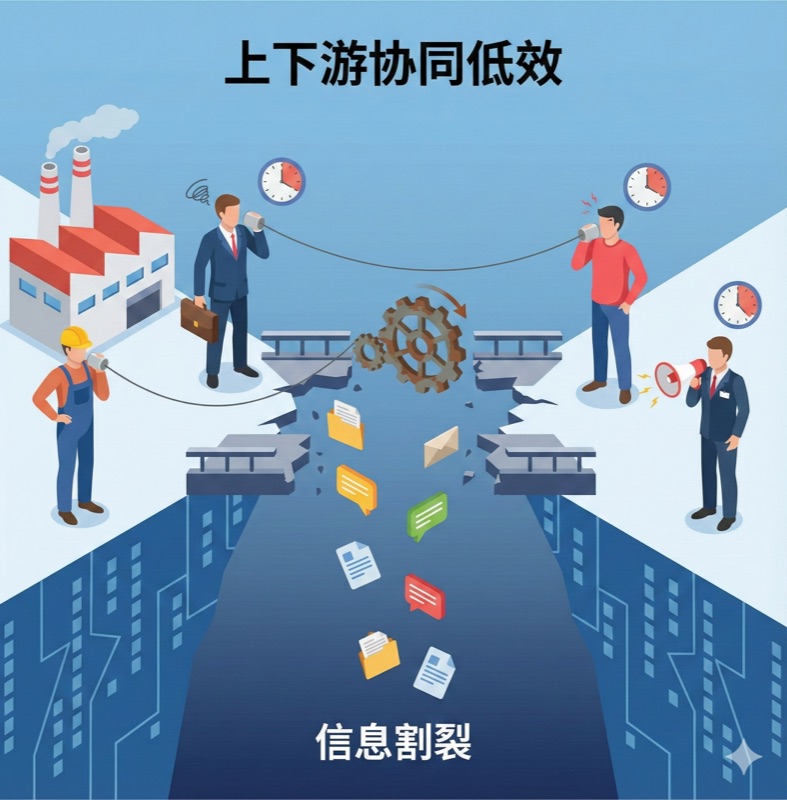 多个企业协同工作的示意图,流程打通、数据互通、联合管理